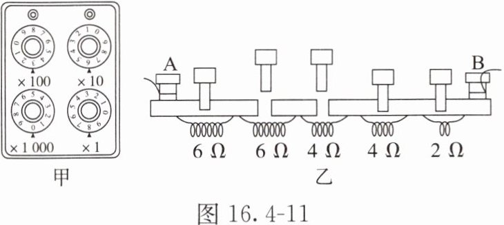 Ω。如图16.4 - 11乙所示是插入式电阻箱的结构示意图,它的最大电阻是22