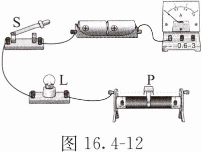 4. 在如图16.4 - 12所示的电路中,有一根导线尚未连接,请用笔画线表示导线将电路补充完整。要求当滑片P向左移动时,小灯泡L变暗。