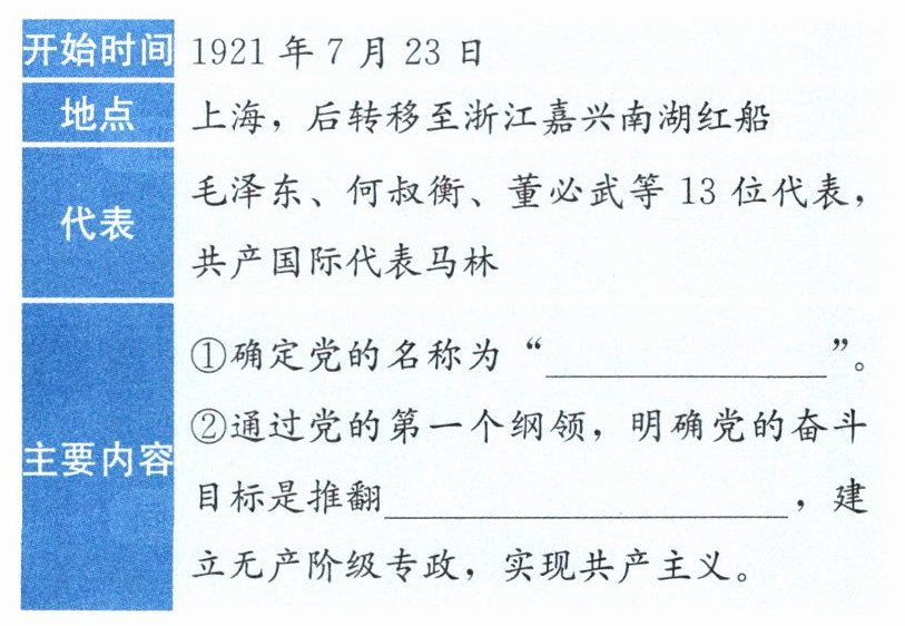 1. 陈独秀 上海 2. 中共一大 中国共产党 资产阶级政权 陈独秀