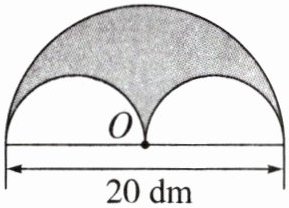 $\frac{90°}{360°}×3.14×(6^2-4^2)+3.14×1^2=18.84(cm^2)$