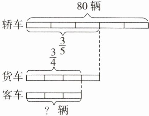 说图意略。$80×\frac{3}{5}×\frac{3}{4}=36$(辆)