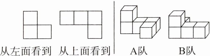 3. $A$,$B$两队按照不同位置看到的图形,用$5$个小正方体分别搭出下面的立体图形,正确的是(
