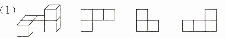 (1) 从上面看,只能看见一个小正方形的是( )。