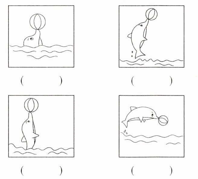 请按海豚跳出水面的顺序,在四个画面下的括号里标出①②③④。