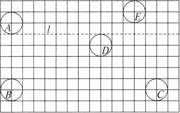 )格得到的。3. 以虚线 $ l $ 为对称轴,画出位置在 $ D $ 的圆的轴对称图形,图形位置为 $ F $。
