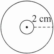 4. 下图中,圆环的宽度为 $ 2 \, cm $,小圆的直径是大圆半径的 $ \frac{1}{2} $,则小圆的半径是(