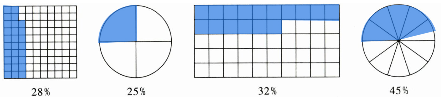 2. 在下面的图中,用笔涂出对应的百分数。