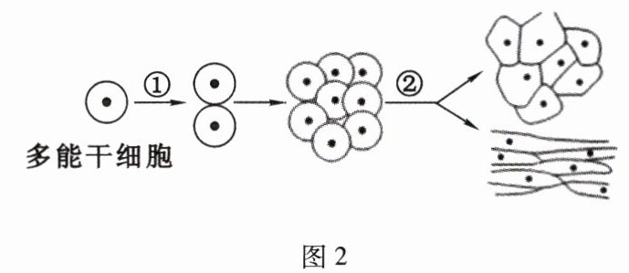 。(2)如图2,多能干细胞长到一定的大小,先经过①
