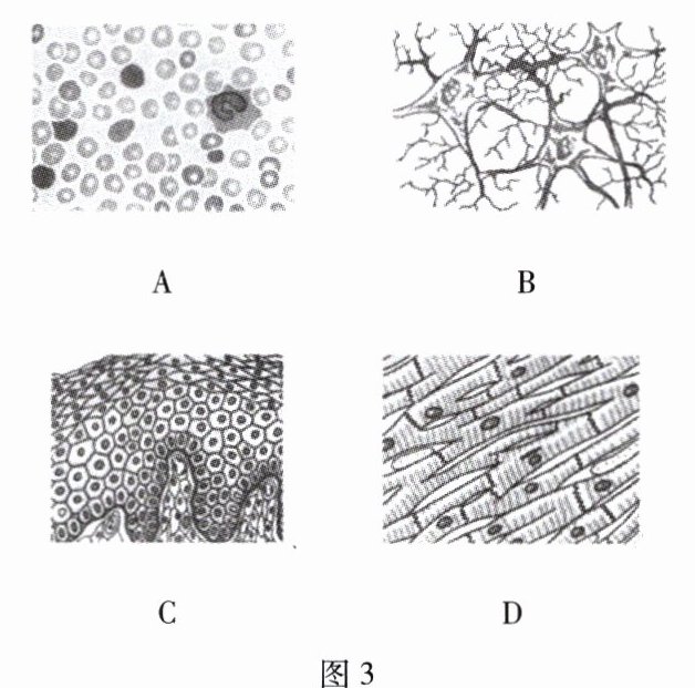 (1)心脏主要由心肌细胞构成,图3中属于心肌组织的是