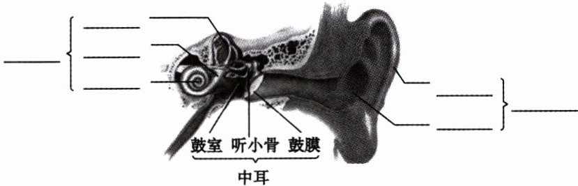 (2) 听觉的形成:外界的声波经过外耳道传到____,鼓膜的振动通过听小骨传到____,刺激了____内相应的感觉细胞,这些细胞就将声波信息通过____传给大脑的一定区域(听觉中枢),人就产生了听觉。
