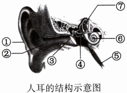 (1) “入耳式耳机”佩戴的部位为耳的[②]____的入口处。“入耳式耳机”声音信号的传递需经过结构②传递到[③]____,结构③通过振动将声音信号传递给[ ]____,再将声波的刺激传到内耳。