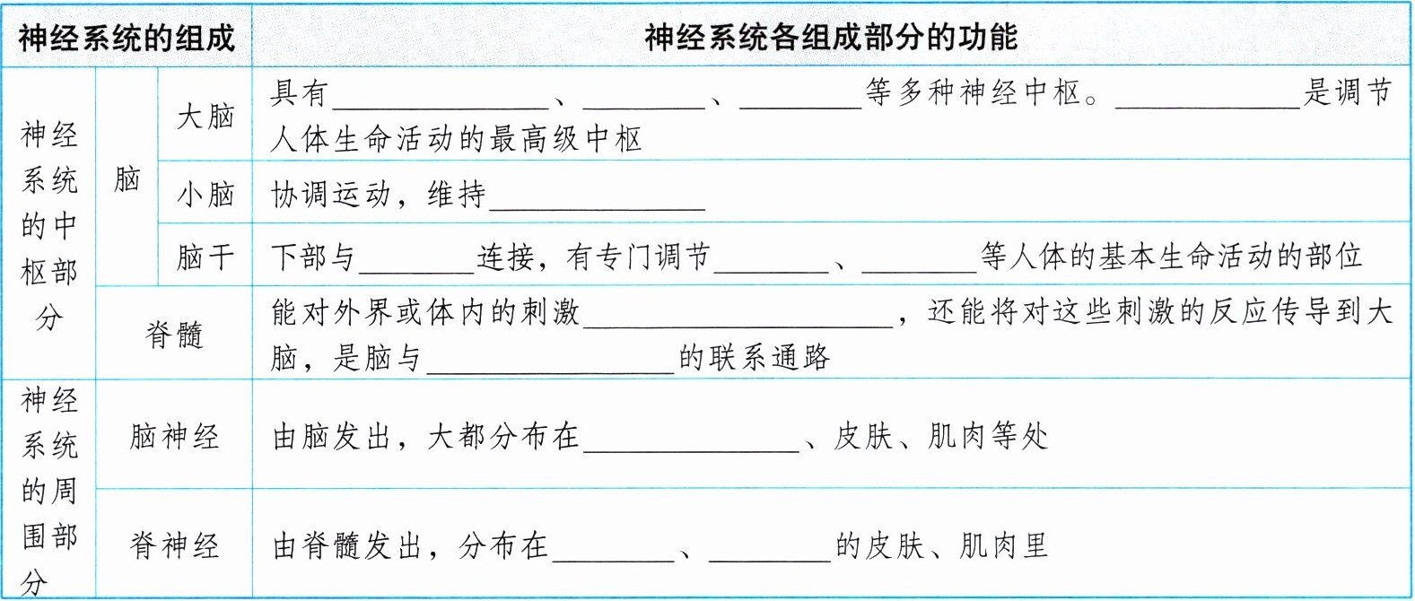 (2)神经细胞 胞体 突起 结构和功能的基本单位(3)突起 鞘 束 膜(4)神经末梢