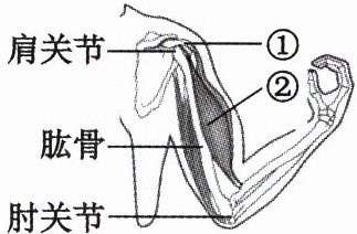C.在完成屈肘动作时,②牵动骨绕关节活动,①的存在无意义