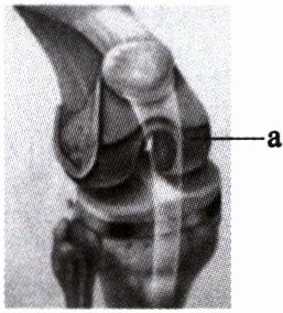 2. 膝关节磨损是关节软骨退化或损伤引发的常见问题,如果膝关节已严重磨损,往往需要置换人工关节(如图)。其中的a相当于人体关节中的( )