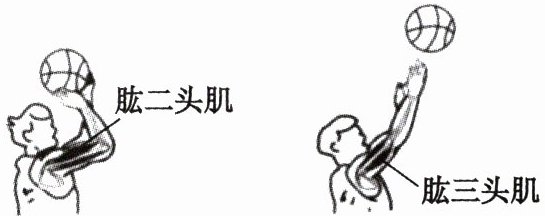 6. 打篮球是中学生喜爱的运动。打篮球可以提高身体素质,培养意志品质,促进学生全面发展。下图表示双手投篮动作,有关叙述正确的是( )