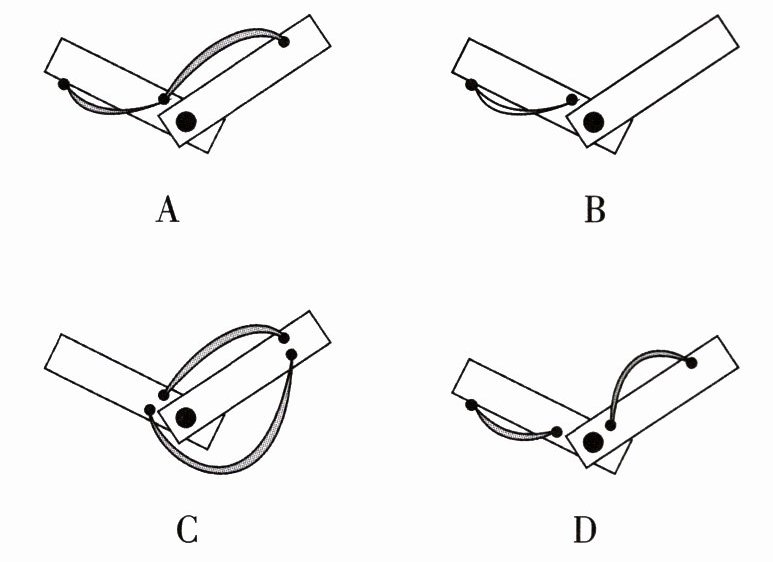 4. 下图为某兴趣小组同学利用木板、松紧带、螺丝制作的模型,模拟人体骨、关节、肌肉三者之间的关系。请据图回答: