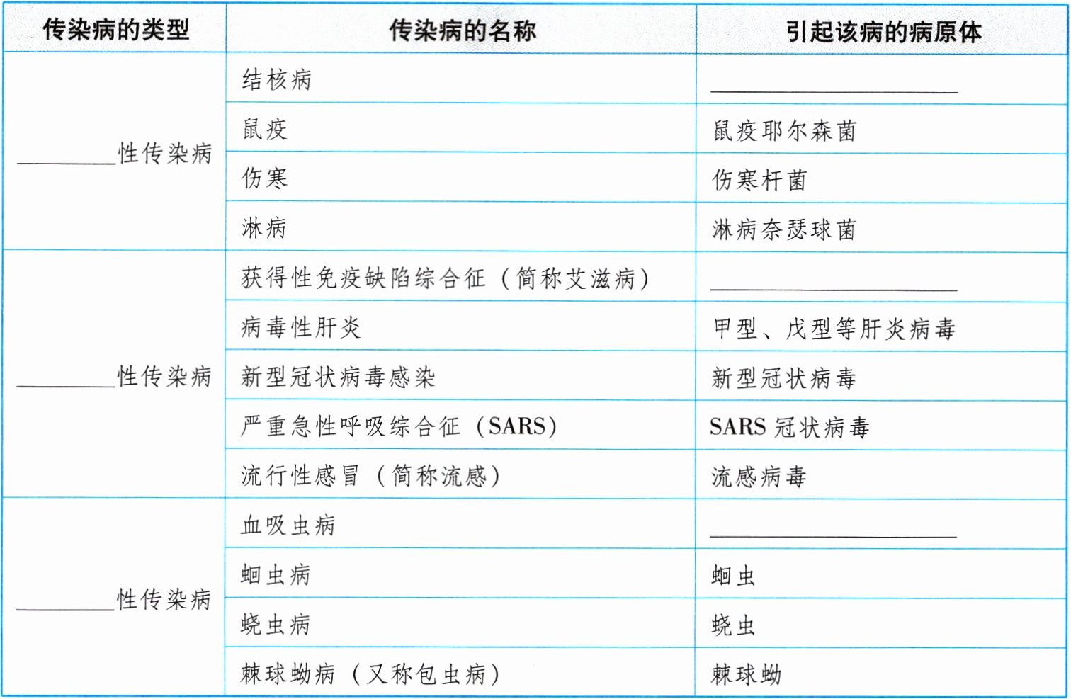 |传染病的类型|传染病的名称|引起该病的病原体|