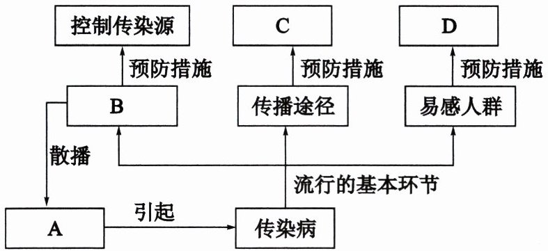 (2)针对新型冠状病毒感染流行,预防措施C和D分别是切断传播途径和______。请就预防措施C列举两项行之有效的具体措施:______。