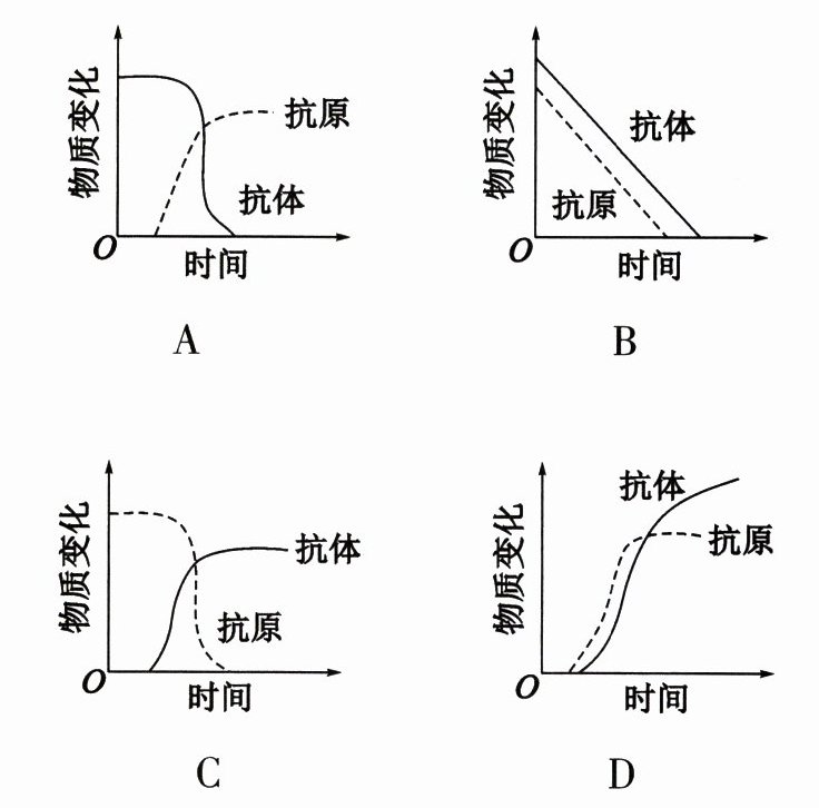10. 人体接种疫苗后,体内抗原、抗体含量会发生相应变化,图示中能正确表示这种变化的是( )