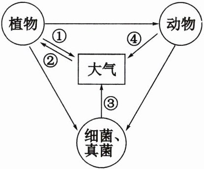 B.图中能量流动方向是:植物→动物→细菌、真菌→植物