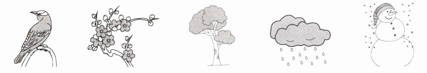 ①雨 ②雪 ③花 ④鸟 ⑤树