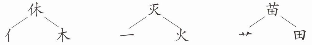 “休”由“人”和“木”组成,一个人靠着树,表示“休息”的意思。