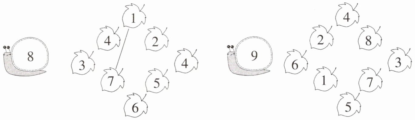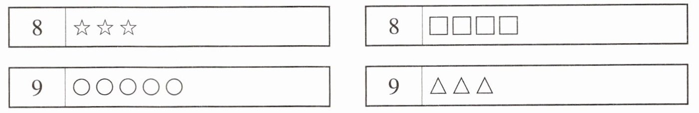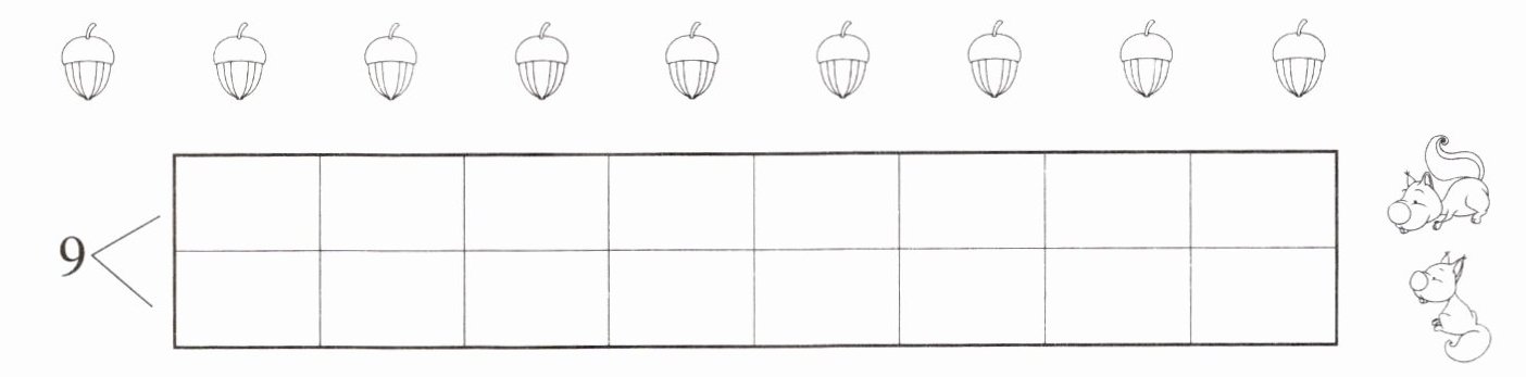 3. 把9个橡果分给两只小松鼠,可以怎么分?分一分,填一填。