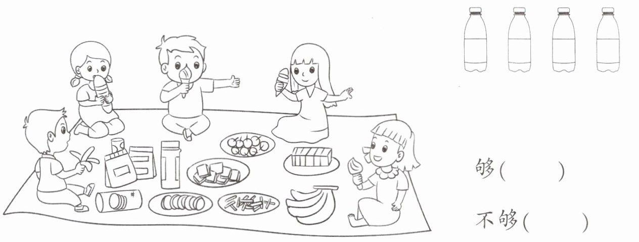 4. 每人一瓶水,这些水够吗?(在正确答案的后面画“√”)