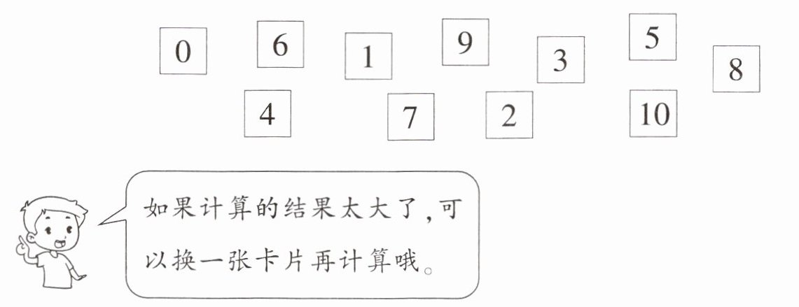 2. 准备一些数字卡片,随意选两张卡片进行加法或减法计算。