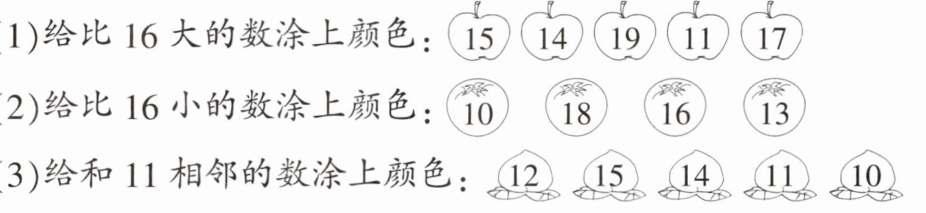 (1) 给比 16 大的数涂上颜色:19,17,18。