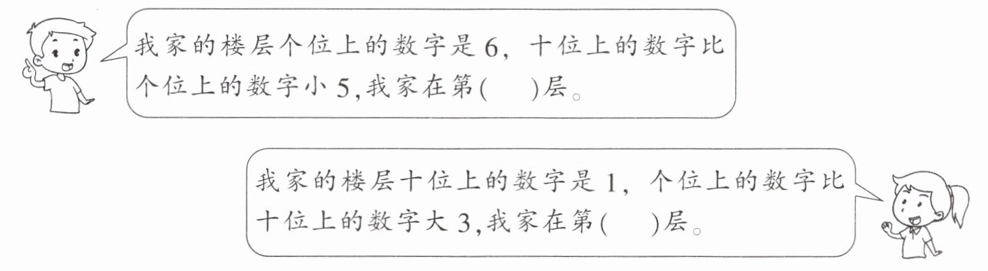 我家的楼层十位上的数字是 1,个位上的数字比十位上的数字大 3,我家在第( )层。