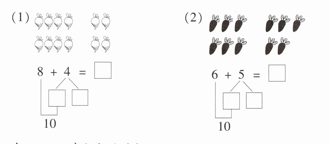 1. 先圈出10个,再填一填,算一算。