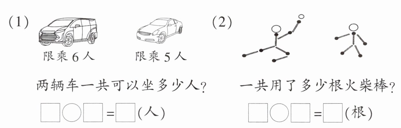 还可以怎样坐?用算式表示出来。$□◯□=□◯□$