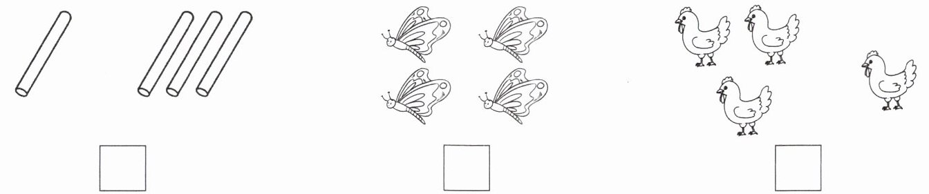 4. 下面哪些图可以用 $1 + 3 = 4$ 表示,在图下的$□$里画“√”。
