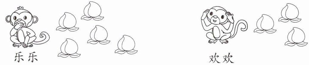 1. 数出乐乐有5个桃子,欢欢有3个桃子。