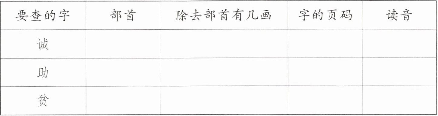 |要查的字|部首|除去部首有几画|字的页码|读音|
