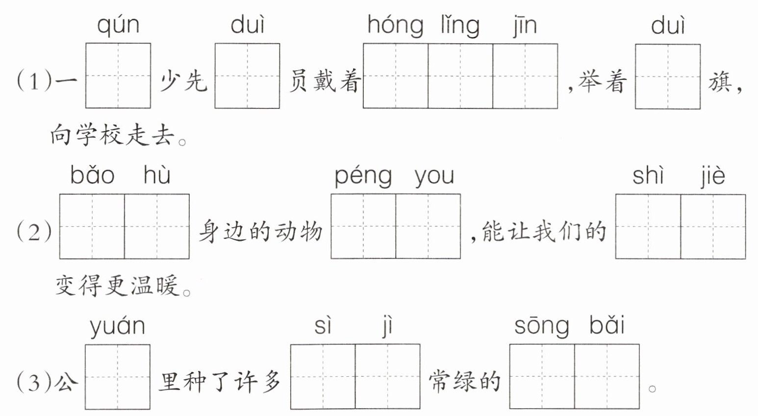 1. 读句子,根据拼音写字词。