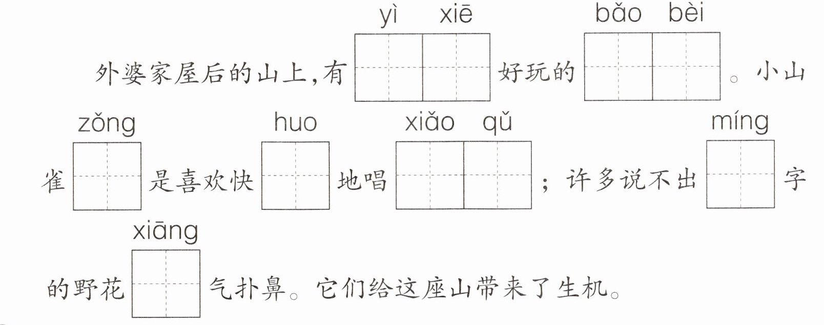 (2)小鸟在枝头欢快地歌唱,迎接清晨的阳光。