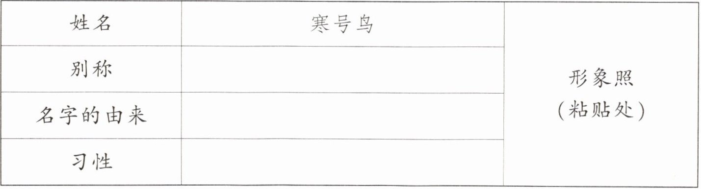 4 你知道寒号鸟不是鸟吗?快去找找资料,给寒号鸟做一张名片吧。