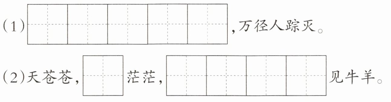 4 用“○”圈出《江雪》每句诗中的第一个字并抄写在田字格里,再读一读。