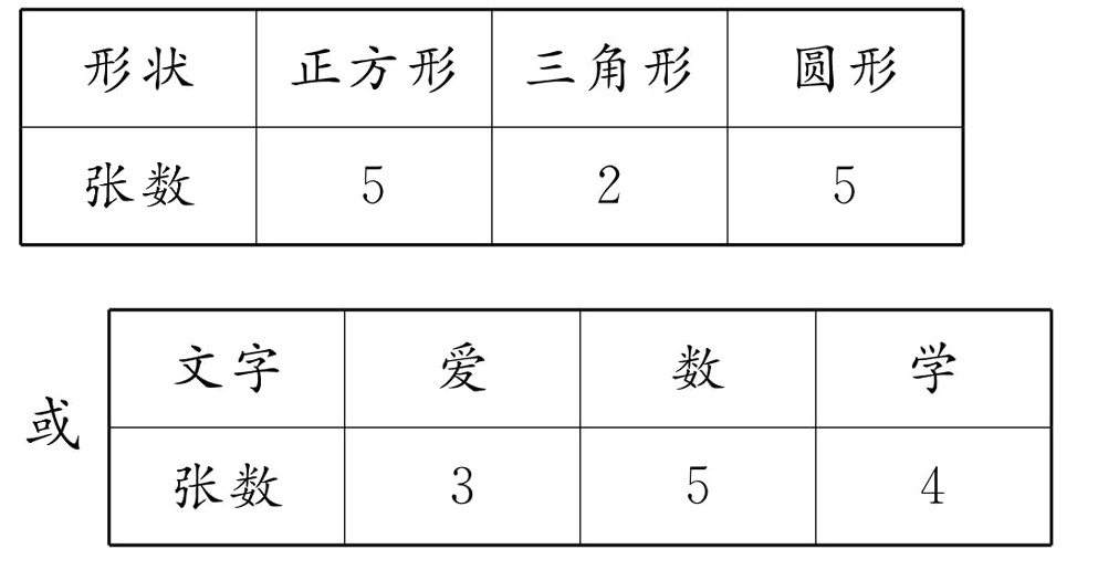 (1) 按卡片形状分类, 填写下表。