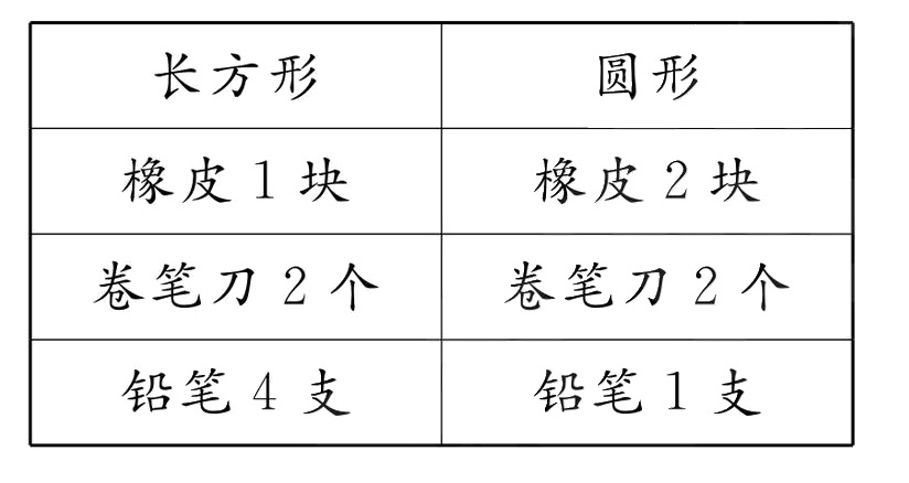 (1)先将卡片按形状分类,再把结果记录在下表中。