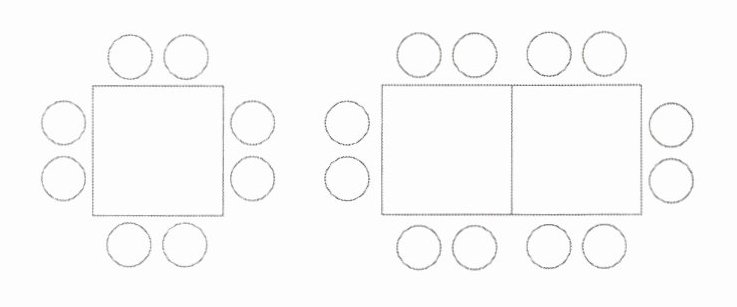 5. 1 张桌子可以坐 8 人(如下图所示),2 张桌子拼起来可以坐(