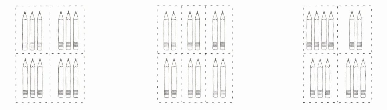 1 把 12 支铅笔平均分给 4 个小朋友。下面哪种分法对?在对的( )里画“√”。