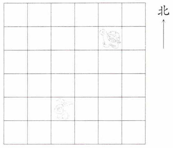 (1)小乌龟先向西走3格,再向南走4格。小兔先向北走4格,再向东走2格。