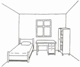 (1)右图中,如果房间的窗户朝西,那么书柜在房间的(