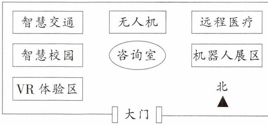 (3)设计一条能够经过所有展区的参观路线。(直接用箭头在图中标注出参观路线)