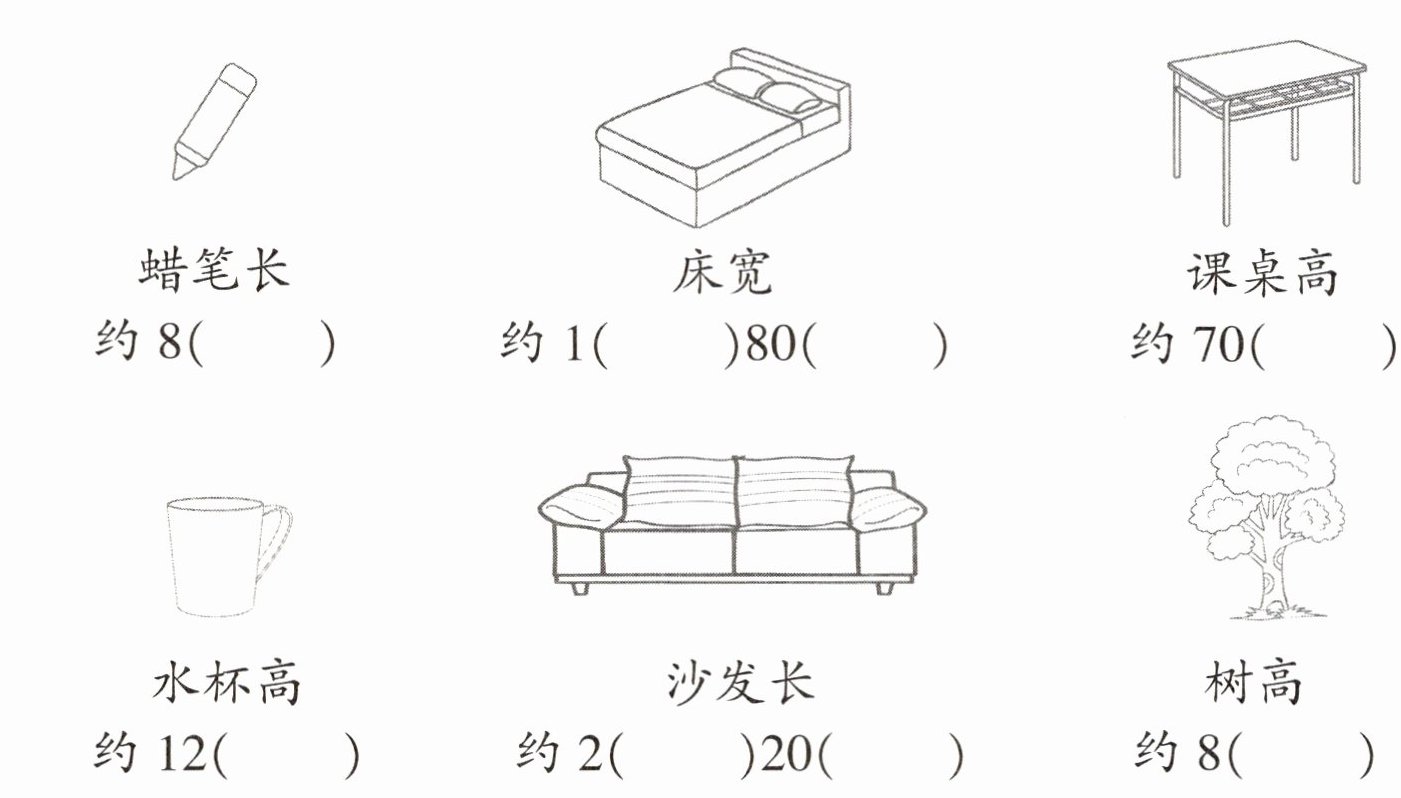 4. 把30米、30厘米、3厘米、3米按从长到短的顺序排一排。