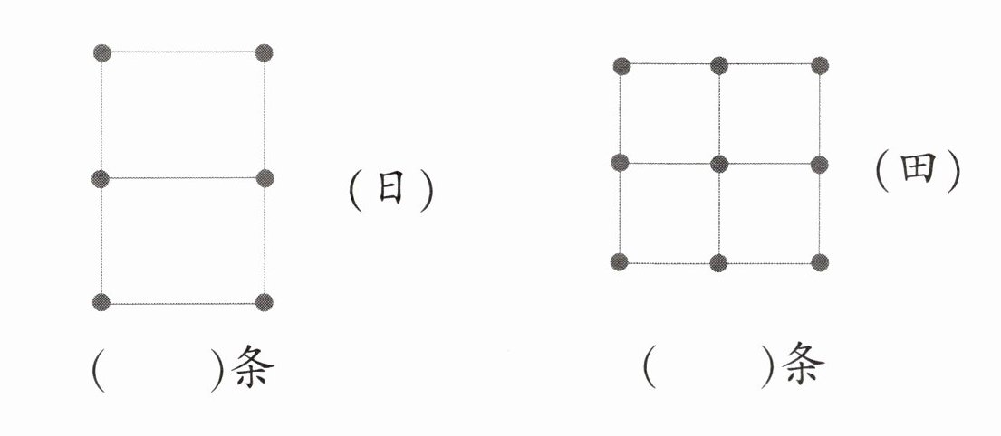 5. 汉字是中华民族五千多年文化的瑰宝。将横平竖直的笔画看成线段,数一数下面的汉字分别有多少条线段。