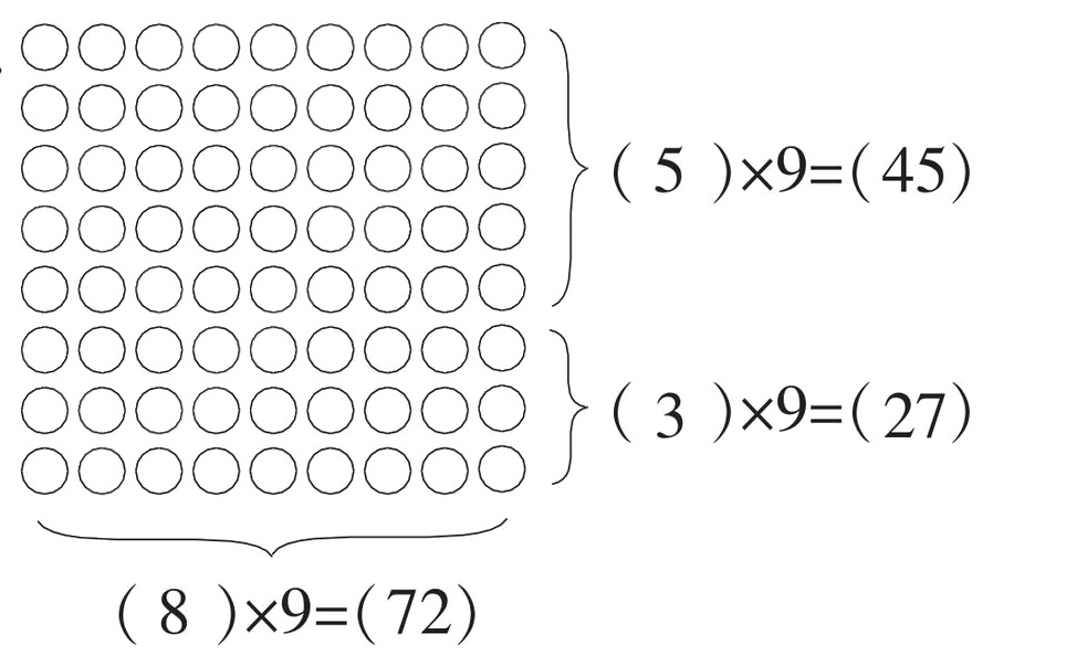 (4) 63 人玩“老鹰捉小鸡”的游戏,9 人 1 组,可以分成几组?如果平均分成 9 组,每组有多少人?